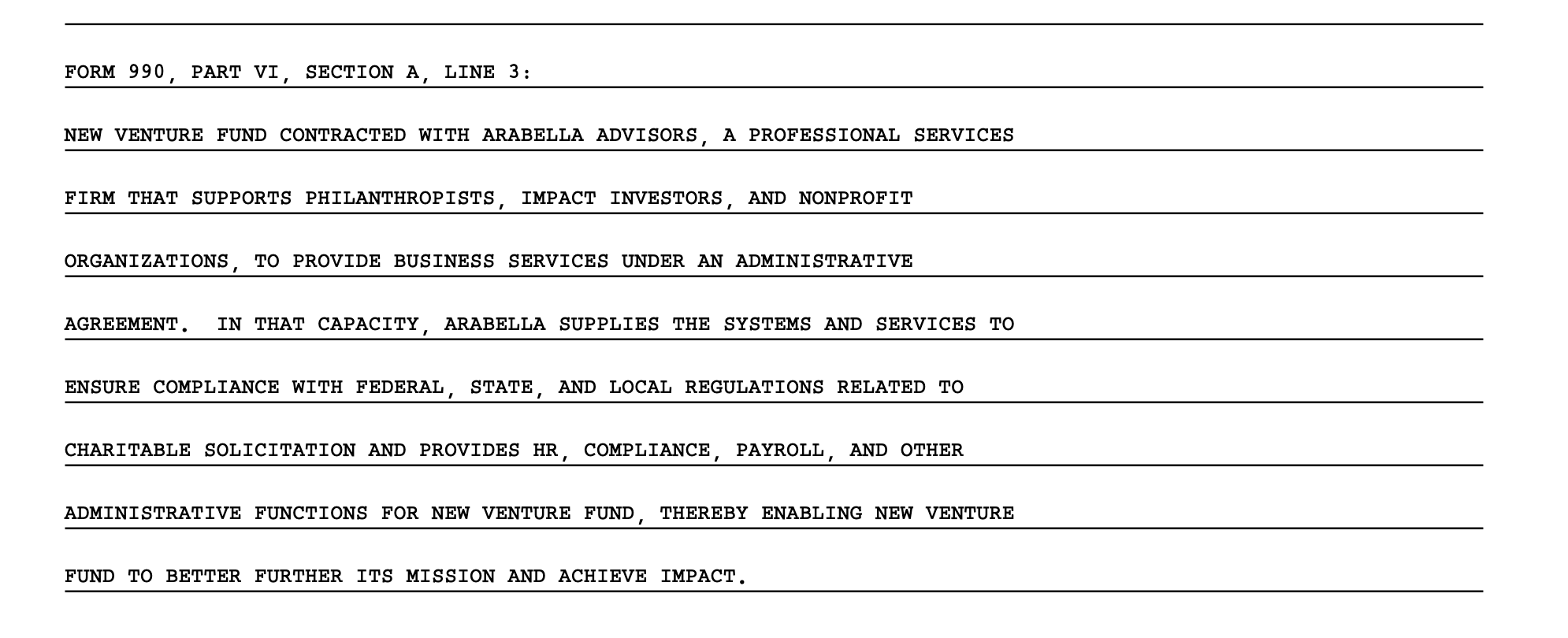 Description: Arabella-managed fiscal vehicles appear throughout public tax filings as fiscal sponsors and grantmakers that distribute substantial sums to a wide array of advocacy, civic-engagement, and community organizations. The administrative relationships and grant schedules are documented in Form-990s and Schedule-O disclosures. Reporters and researchers rely on those filings to trace grant flows and to map how pass-through and fiscal-sponsorship structures can obscure the ultimate origin and downstream use of funded projects.